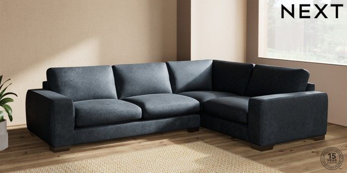 7.2.10 Houghton Deep Sit Large Corner Sofa - Right Hand Plush Chenille Slate Blue Large Square Angle - Gunmetal | Made Click here to use our website with more accessibility support, for example screen readers