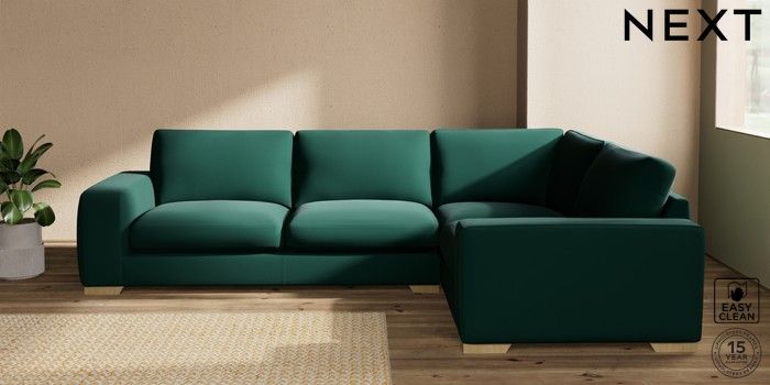 7.2.10 Houghton Deep Sit Large Corner Sofa - Right Hand Plush Velvet Easy Clean Bottle Green Large Square Angle - Light | Made Click here to use our website with more accessibility support, for example screen readers