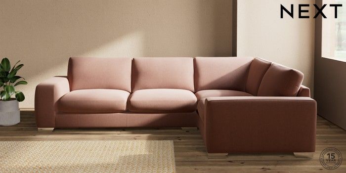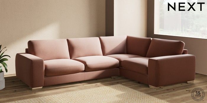 7.2.10 Houghton Deep Sit Large Corner Sofa - Right Hand Relaxed Linen Look Light Rust Brown Large Square Angle - Chrome Metal | Made Click here to use our website with more accessibility support, for example screen readers