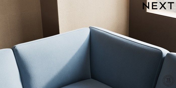 7.2.10 Houghton Deep Sit Large Corner Sofa - Right Hand Relaxed Linen Look Mid Blue Large Square Angle - Chrome Metal | Made Click here to use our website with more accessibility support, for example screen readers