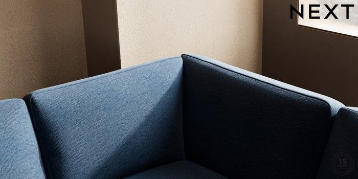 7.2.10 Houghton Deep Sit Large Corner Sofa - Right Hand Ripple Chenille Dark Blue Large Square Angle - Brushed Brass | Made Click here to use our website with more accessibility support, for example screen readers