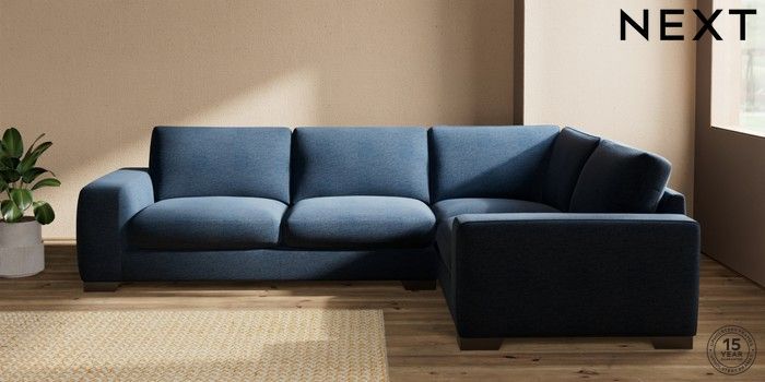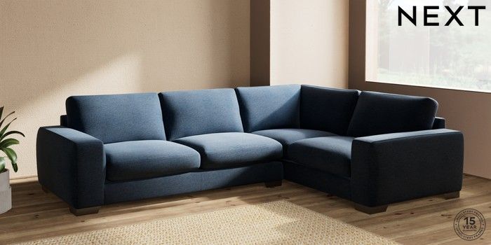 7.2.10 Houghton Deep Sit Large Corner Sofa - Right Hand Ripple Chenille Dark Blue Large Square Angle - Gunmetal | Made Click here to use our website with more accessibility support, for example screen readers
