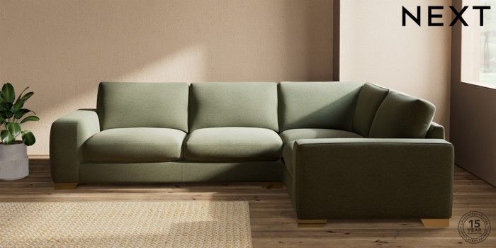 7.2.10 Houghton Deep Sit Large Corner Sofa - Right Hand Ripple Chenille Mid Moss Green Large Square Angle - Brushed Brass | Made Click here to use our website with more accessibility support, for example screen readers