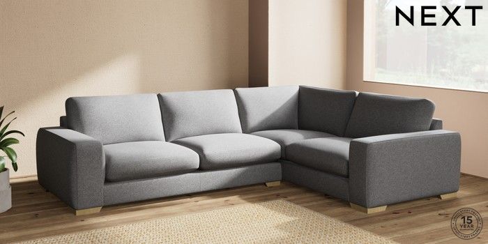 7.2.10 Houghton Deep Sit Large Corner Sofa - Right Hand Studio Chenille Mid Grey Large Square Angle - Light | Made Click here to use our website with more accessibility support, for example screen readers