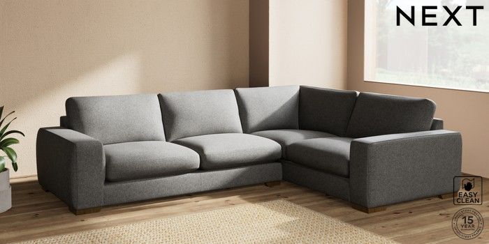 7.2.10 Houghton Deep Sit Large Corner Sofa - Right Hand Tweedy Blend Easy Clean Dark Grey Large Square Angle - Mid | Made Click here to use our website with more accessibility support, for example screen readers