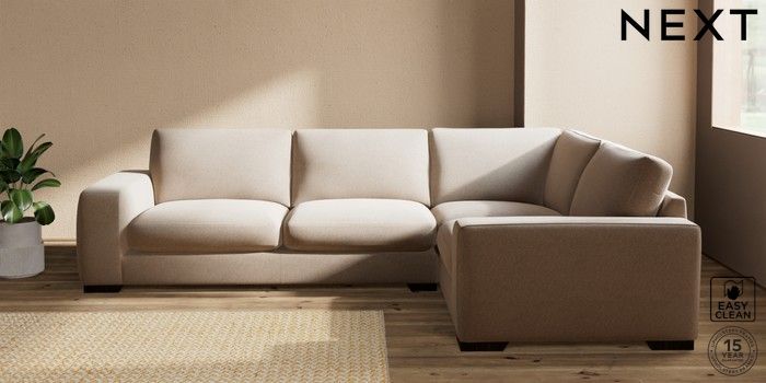 7.2.10 Houghton Deep Sit Large Corner Sofa - Right Hand Tweedy Blend Easy Clean Light Dove Natural Large Square Angle - Dark | Made Click here to use our website with more accessibility support, for example screen readers