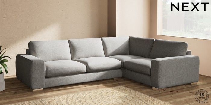 7.2.10 Houghton Deep Sit Large Corner Sofa - Right Hand Tweedy Chenille Mid Grey Large Square Angle - Chrome Metal | Made Click here to use our website with more accessibility support, for example screen readers