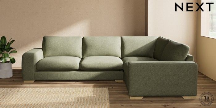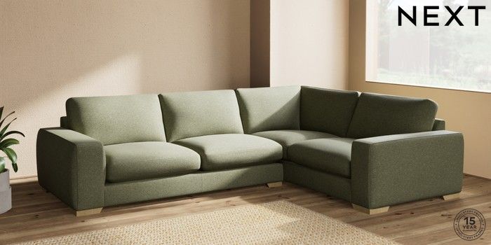 7.2.10 Houghton Deep Sit Large Corner Sofa - Right Hand Tweedy Chenille Mid Moss Green Large Square Angle - Light | Made Click here to use our website with more accessibility support, for example screen readers