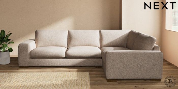 7.2.10 Houghton Deep Sit Large Corner Sofa - Right Hand Tweedy Chenille Mid Natural Large Square Angle - Mid | Made Click here to use our website with more accessibility support, for example screen readers