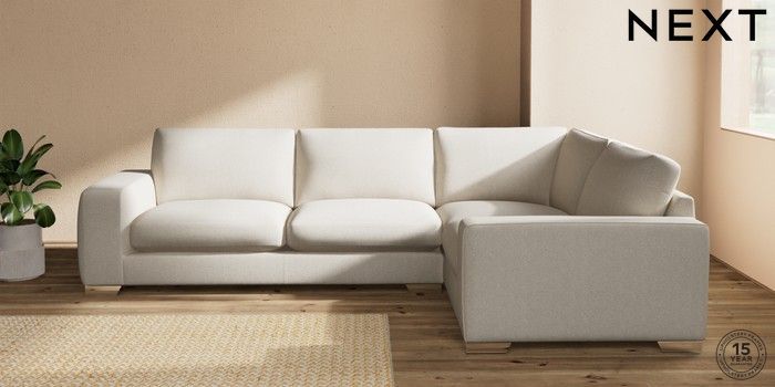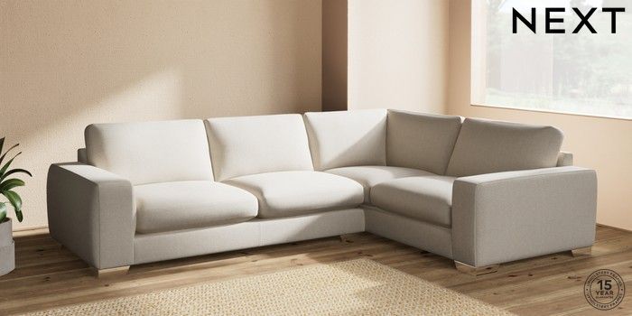 7.2.10 Houghton Deep Sit Large Corner Sofa - Right Hand Tweedy Chenille Oyster Large Square Angle - Chrome Metal | Made Click here to use our website with more accessibility support, for example screen readers