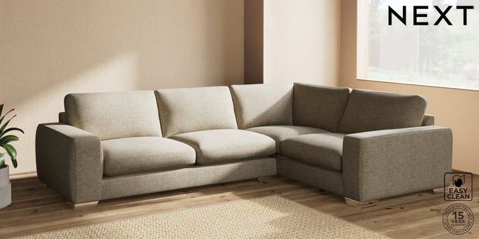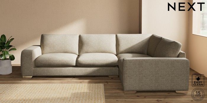 7.2.10 Houghton Deep Sit Large Corner Sofa - Right Hand Woven Chenille Easy Clean Mid Natural Large Square Angle - Chrome Metal | Made Click here to use our website with more accessibility support, for example screen readers