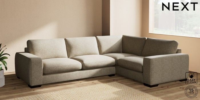 7.2.10 Houghton Deep Sit Large Corner Sofa - Right Hand Woven Chenille Easy Clean Mid Natural Large Square Angle - Dark | Made Click here to use our website with more accessibility support, for example screen readers