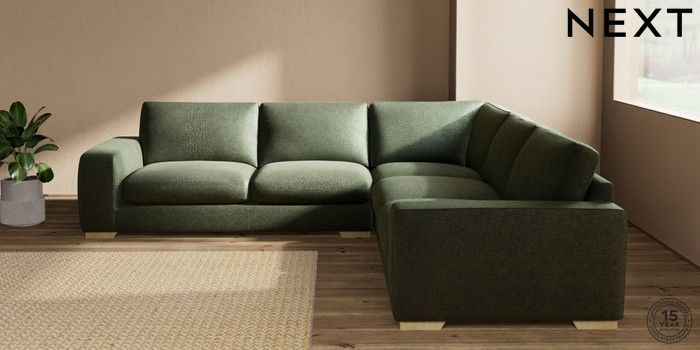 7.2.10 Houghton Deep Sit Large Corner Sofa - Universal Boucle Chenille Dark Moss Green Large Square Angle - Light | Made Click here to use our website with more accessibility support, for example screen readers