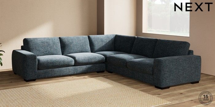7.2.10 Houghton Deep Sit Large Corner Sofa - Universal Chunky Chenille Dark Navy Blue Large Square Angle - Dark | Made Click here to use our website with more accessibility support, for example screen readers