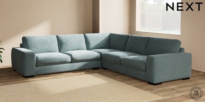 7.2.10 Houghton Deep Sit Large Corner Sofa - Universal Chunky Chenille Light Teal Green Large Square Angle - Dark | Made Click here to use our website with more accessibility support, for example screen readers