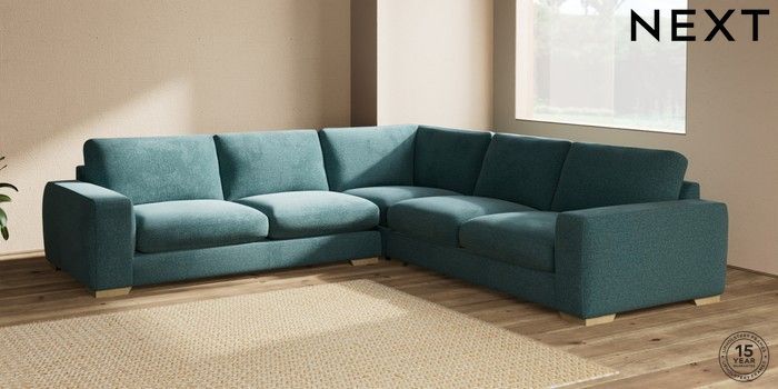 7.2.10 Houghton Deep Sit Large Corner Sofa - Universal Chunky Chenille Mid Teal Green Large Square Angle - Light | Made Click here to use our website with more accessibility support, for example screen readers