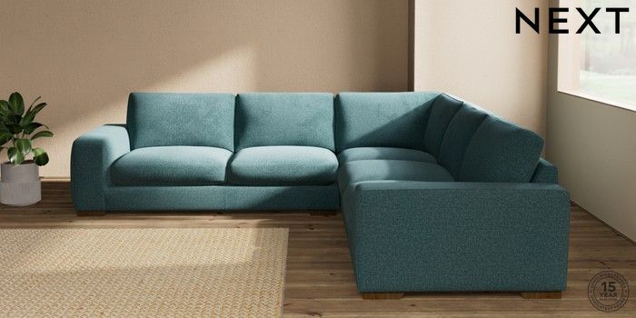 7.2.10 Houghton Deep Sit Large Corner Sofa - Universal Chunky Chenille Mid Teal Green Large Square Angle - Mid | Made Click here to use our website with more accessibility support, for example screen readers