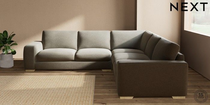 7.2.10 Houghton Deep Sit Large Corner Sofa - Universal Chunky Marl Light Olive Green Large Square Angle - Light | Made Click here to use our website with more accessibility support, for example screen readers