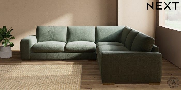 7.2.10 Houghton Deep Sit Large Corner Sofa - Universal Chunky Texture Mid Forest Green Large Square Angle - Mid | Made Click here to use our website with more accessibility support, for example screen readers