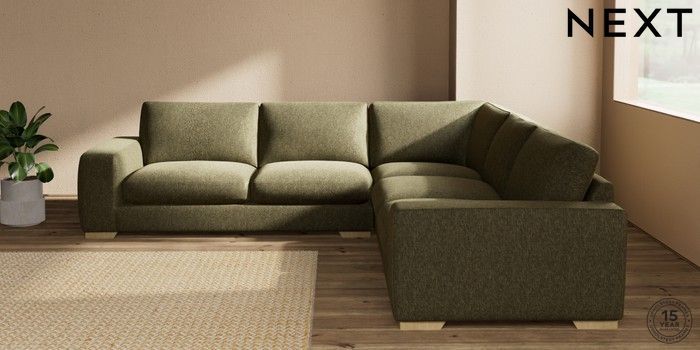 7.2.10 Houghton Deep Sit Large Corner Sofa - Universal Cotswold Chenille Dark Green Large Square Angle - Light | Made Click here to use our website with more accessibility support, for example screen readers