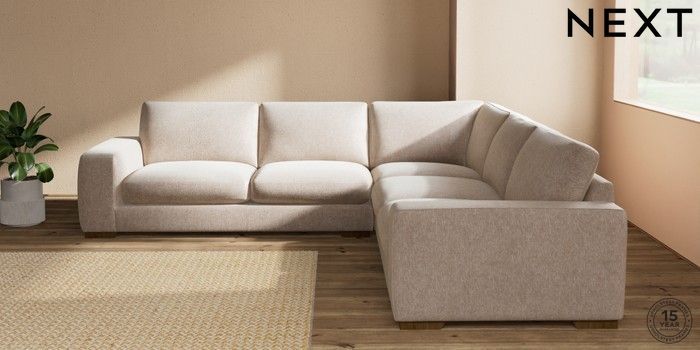 7.2.10 Houghton Deep Sit Large Corner Sofa - Universal Cotswold Chenille Light Natural Large Square Angle - Mid | Made Click here to use our website with more accessibility support, for example screen readers