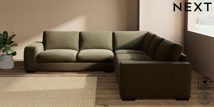 7.2.10 Houghton Deep Sit Large Corner Sofa - Universal Fine Chenille Easy Clean Dark Moss Green Large Square Angle - Dark | Made Click here to use our website with more accessibility support, for example screen readers