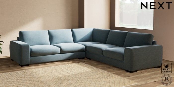7.2.10 Houghton Deep Sit Large Corner Sofa - Universal Fine Chenille Easy Clean Mid Blue Large Square Angle - Dark | Made Click here to use our website with more accessibility support, for example screen readers