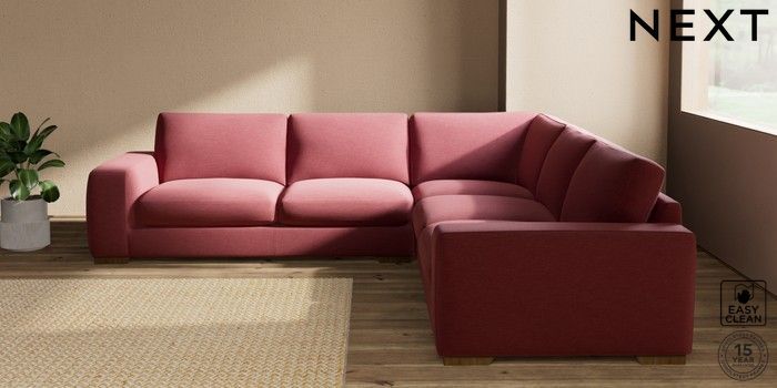 7.2.10 Houghton Deep Sit Large Corner Sofa - Universal Fine Chenille Easy Clean Mid Pink Large Square Angle - Mid | Made Click here to use our website with more accessibility support, for example screen readers