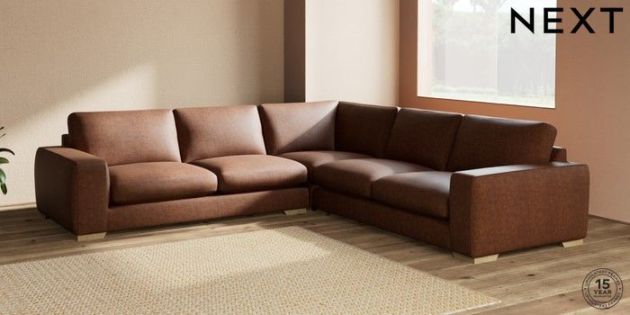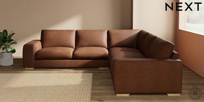 7.2.10 Houghton Deep Sit Large Corner Sofa - Universal Monza Faux Leather Easy Clean Chestnut Brown Large Square Angle - Light | Made Click here to use our website with more accessibility support, for example screen readers