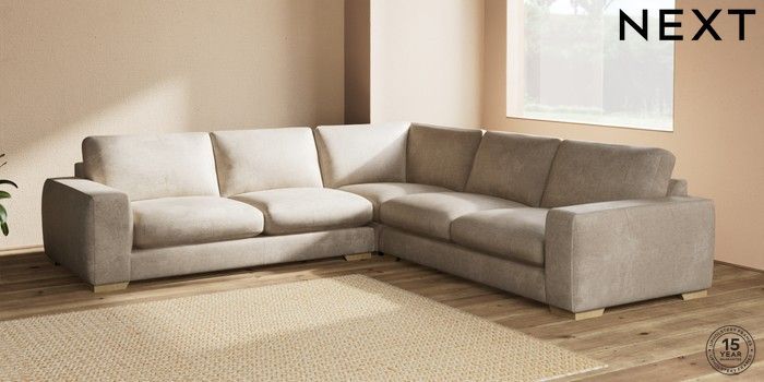 7.2.10 Houghton Deep Sit Large Corner Sofa - Universal Plush Chenille Light Natural Large Square Angle - Light | Made Click here to use our website with more accessibility support, for example screen readers