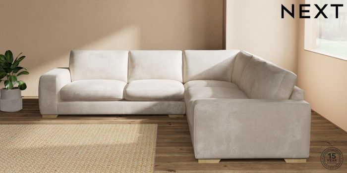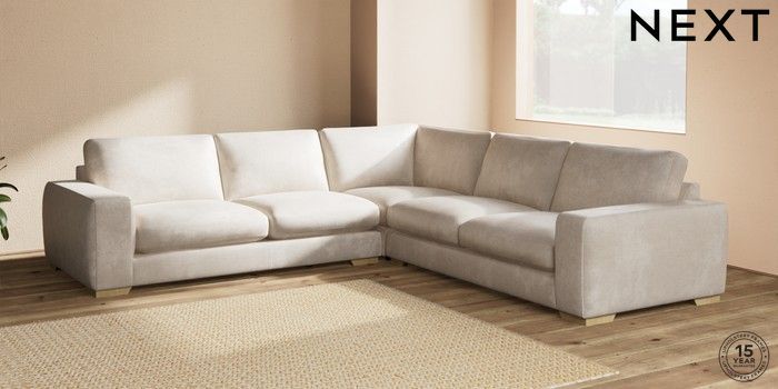 7.2.10 Houghton Deep Sit Large Corner Sofa - Universal Plush Chenille Oyster Large Square Angle - Light | Made Click here to use our website with more accessibility support, for example screen readers