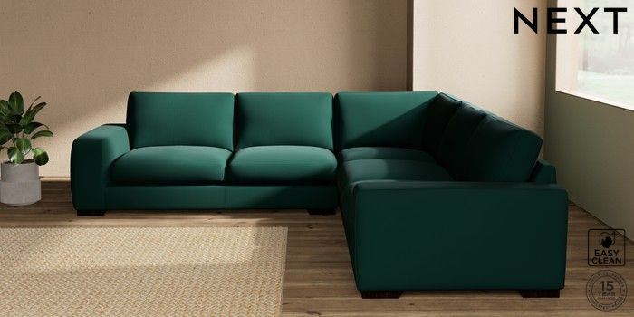 7.2.10 Houghton Deep Sit Large Corner Sofa - Universal Plush Velvet Easy Clean Bottle Green Large Square Angle - Dark | Made Click here to use our website with more accessibility support, for example screen readers