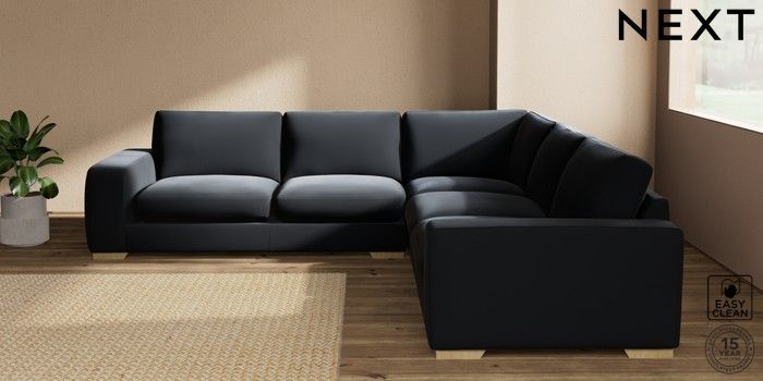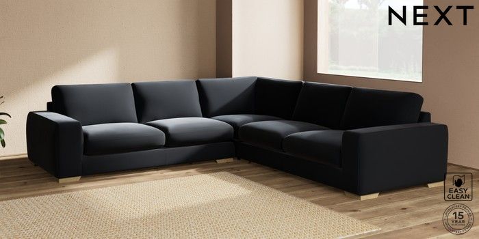7.2.10 Houghton Deep Sit Large Corner Sofa - Universal Plush Velvet Easy Clean Charcoal Grey Large Square Angle - Light | Made Click here to use our website with more accessibility support, for example screen readers