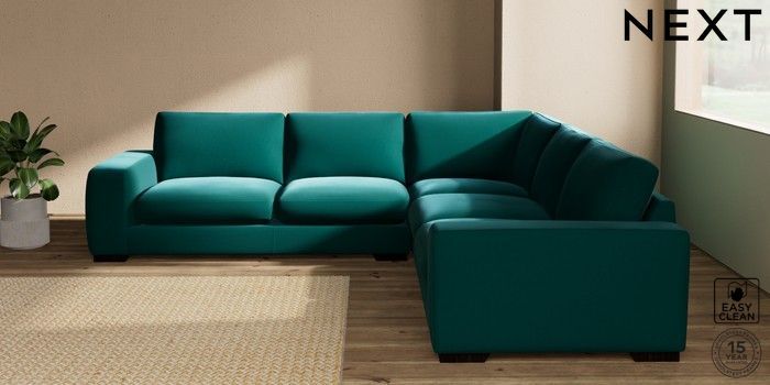 7.2.10 Houghton Deep Sit Large Corner Sofa - Universal Plush Velvet Easy Clean Juniper Green Large Square Angle - Dark | Made Click here to use our website with more accessibility support, for example screen readers