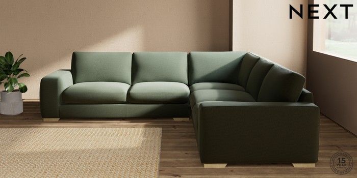 7.2.10 Houghton Deep Sit Large Corner Sofa - Universal Relaxed Linen Look Dark Green Large Square Angle - Light | Made Click here to use our website with more accessibility support, for example screen readers