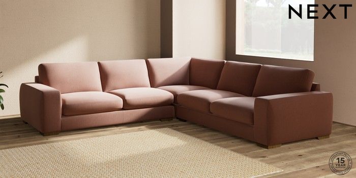 7.2.10 Houghton Deep Sit Large Corner Sofa - Universal Relaxed Linen Look Light Rust Brown Large Square Angle - Mid | Made Click here to use our website with more accessibility support, for example screen readers