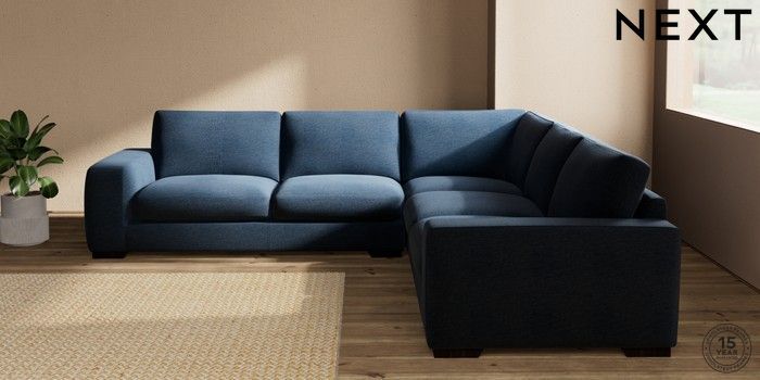 7.2.10 Houghton Deep Sit Large Corner Sofa - Universal Ripple Chenille Dark Blue Large Square Angle - Dark | Made Click here to use our website with more accessibility support, for example screen readers