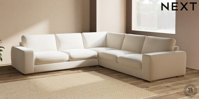7.2.10 Houghton Deep Sit Large Corner Sofa - Universal Ripple Chenille Oyster Large Square Angle - Mid | Made Click here to use our website with more accessibility support, for example screen readers