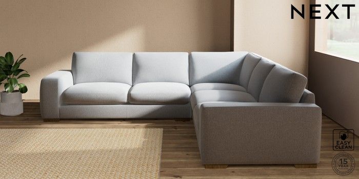 7.2.10 Houghton Deep Sit Large Corner Sofa - Universal Tweedy Blend Easy Clean Light Silver Grey Large Square Angle - Mid | Made Click here to use our website with more accessibility support, for example screen readers