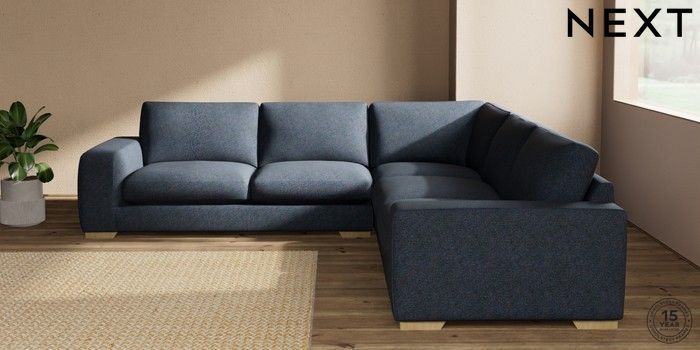 7.2.10 Houghton Deep Sit Large Corner Sofa - Universal Tweedy Chenille Navy Blue Large Square Angle - Light | Made Click here to use our website with more accessibility support, for example screen readers