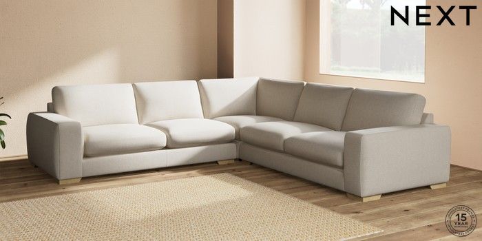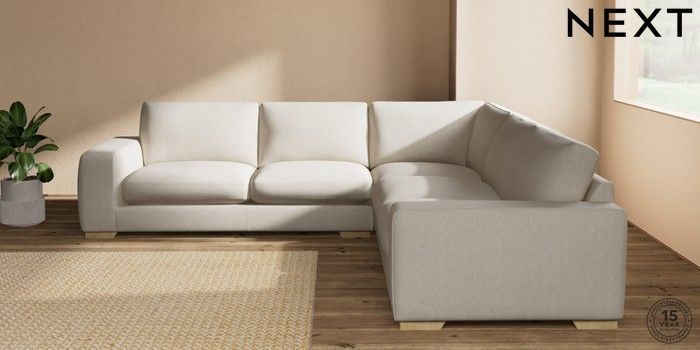 7.2.10 Houghton Deep Sit Large Corner Sofa - Universal Tweedy Chenille Oyster Large Square Angle - Light | Made Click here to use our website with more accessibility support, for example screen readers