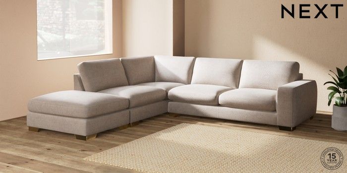 7.2.10 Houghton Deep Sit Large Open End Corner Chaise - Left Hand Boucle Chenille Light Natural Large Square Angle - Brushed Brass | Made Click here to use our website with more accessibility support, for example screen readers