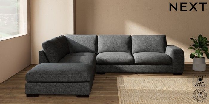 7.2.10 Houghton Deep Sit Large Open End Corner Chaise - Left Hand Boucle Weave Easy Clean Charcoal Grey Large Square Angle - Dark | Made Click here to use our website with more accessibility support, for example screen readers