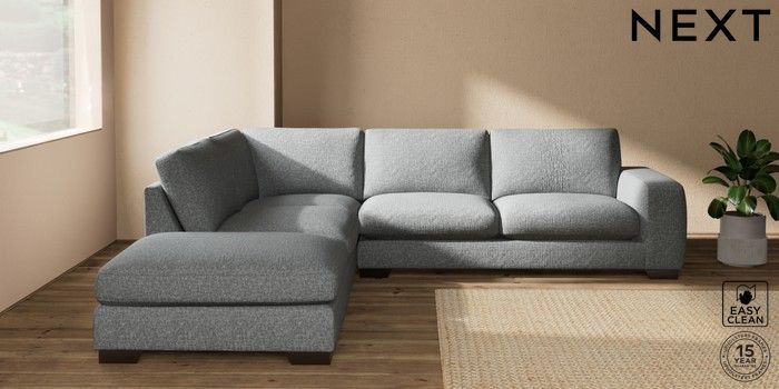 7.2.10 Houghton Deep Sit Large Open End Corner Chaise - Left Hand Chunky Boucle Easy Clean Mid Grey Large Square Angle - Gunmetal | Made Click here to use our website with more accessibility support, for example screen readers