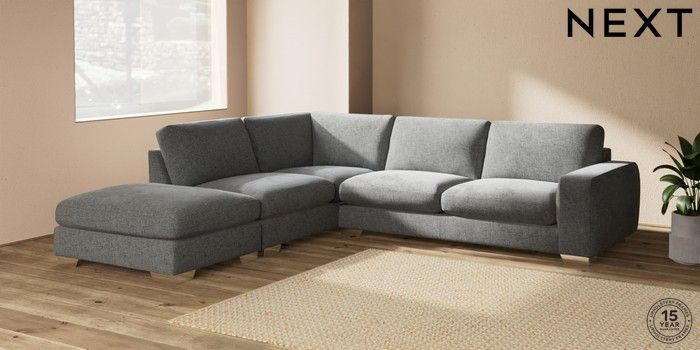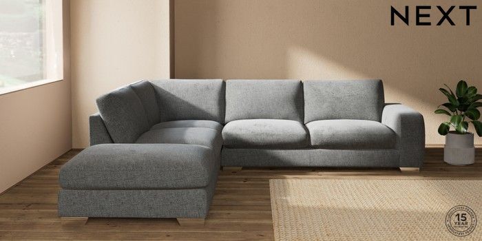 7.2.10 Houghton Deep Sit Large Open End Corner Chaise - Left Hand Chunky Chenille Dark Grey Large Square Angle - Chrome Metal | Made Click here to use our website with more accessibility support, for example screen readers
