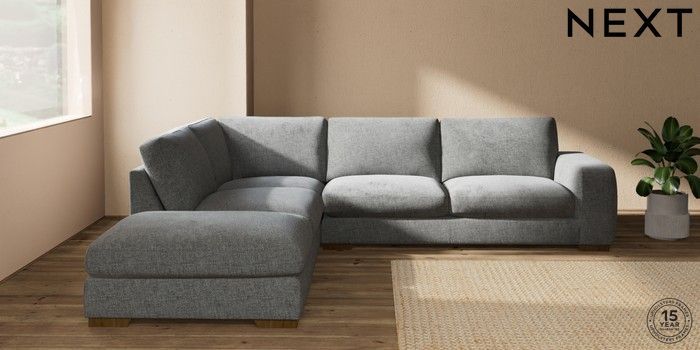 7.2.10 Houghton Deep Sit Large Open End Corner Chaise - Left Hand Chunky Chenille Dark Grey Large Square Angle - Mid | Made Click here to use our website with more accessibility support, for example screen readers