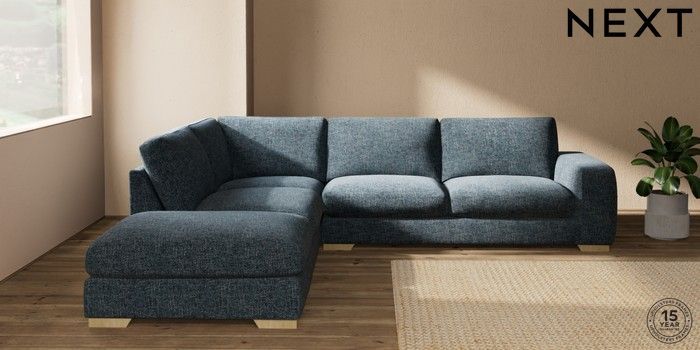 7.2.10 Houghton Deep Sit Large Open End Corner Chaise - Left Hand Chunky Chenille Dark Navy Blue Large Square Angle - Light | Made Click here to use our website with more accessibility support, for example screen readers