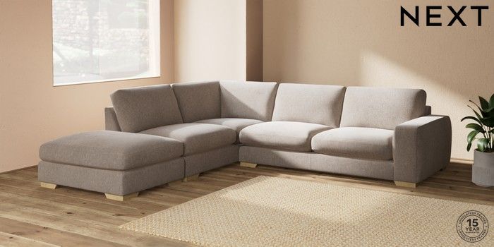 7.2.10 Houghton Deep Sit Large Open End Corner Chaise - Left Hand Chunky Chenille Light Dove Large Square Angle - Light | Made Click here to use our website with more accessibility support, for example screen readers