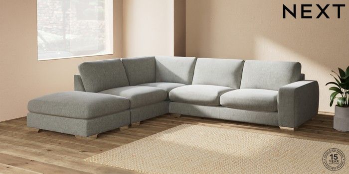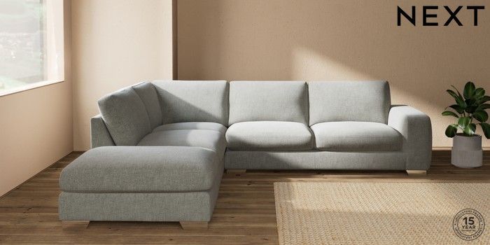 7.2.10 Houghton Deep Sit Large Open End Corner Chaise - Left Hand Chunky Chenille Light Grey Large Square Angle - Chrome Metal | Made Click here to use our website with more accessibility support, for example screen readers