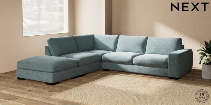 7.2.10 Houghton Deep Sit Large Open End Corner Chaise - Left Hand Chunky Chenille Light Teal Green Large Square Angle - Dark | Made Click here to use our website with more accessibility support, for example screen readers